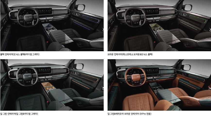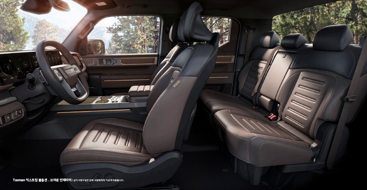 실내 인테리어는 총 4가지이고 일반모델은 3가지 색상이 있습니다. 밝은 브라운색상은 X-PRO에서만 선택가능한것은 조금 아쉽네요. 타스만을 살펴 봤는데요. 사실 상당히 놀랐습니다. 오랫동안 준비해온만큼 디자인이나 옵션등등 많은 부분에서 부족함이 없도록 구성을 해놓았네요. 수십년이 된 렉스턴 스포츠 조차도 부족했던 옵션들이 처음 출시하는 모델부터 아주 풍부하게 선택가능하도록 해 놓은것이 아주 좋아보입니다.
