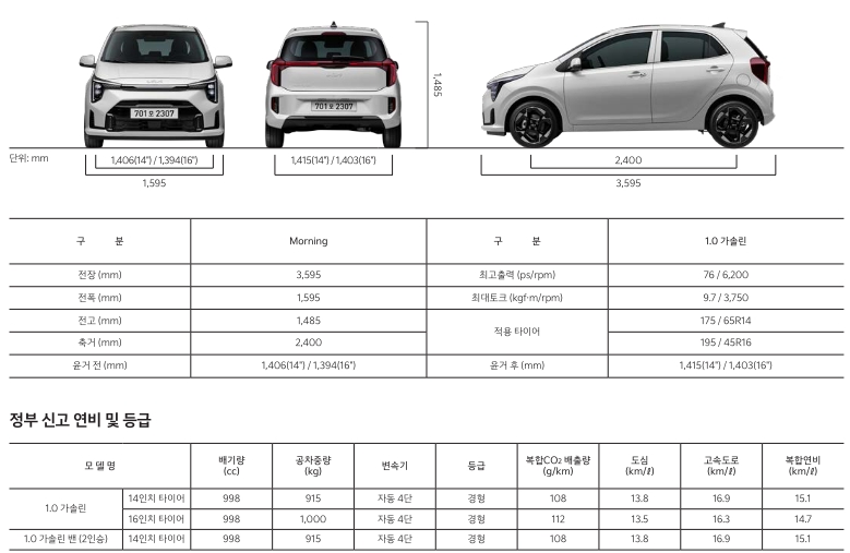 기아 모닝 제원