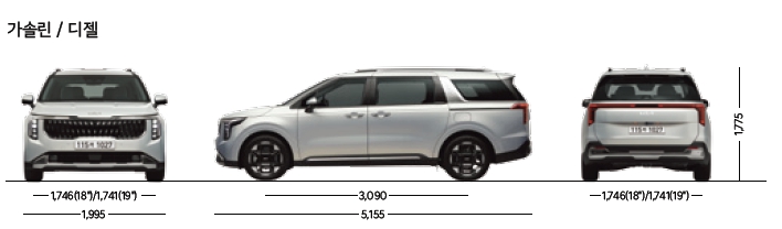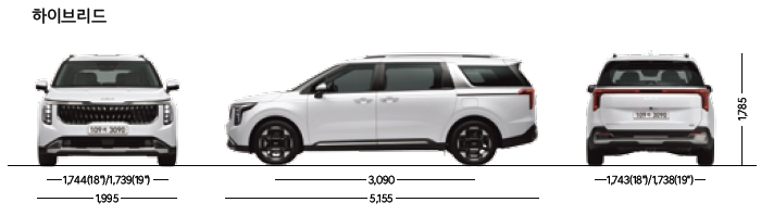 크기는 기존 모델과 다르지 않습니다. 길이는 5155미리에 폭은 1995입니다. 미니밴은 아니지만 쉐보레의 트래버스보다 약간 작은 수치입니다.