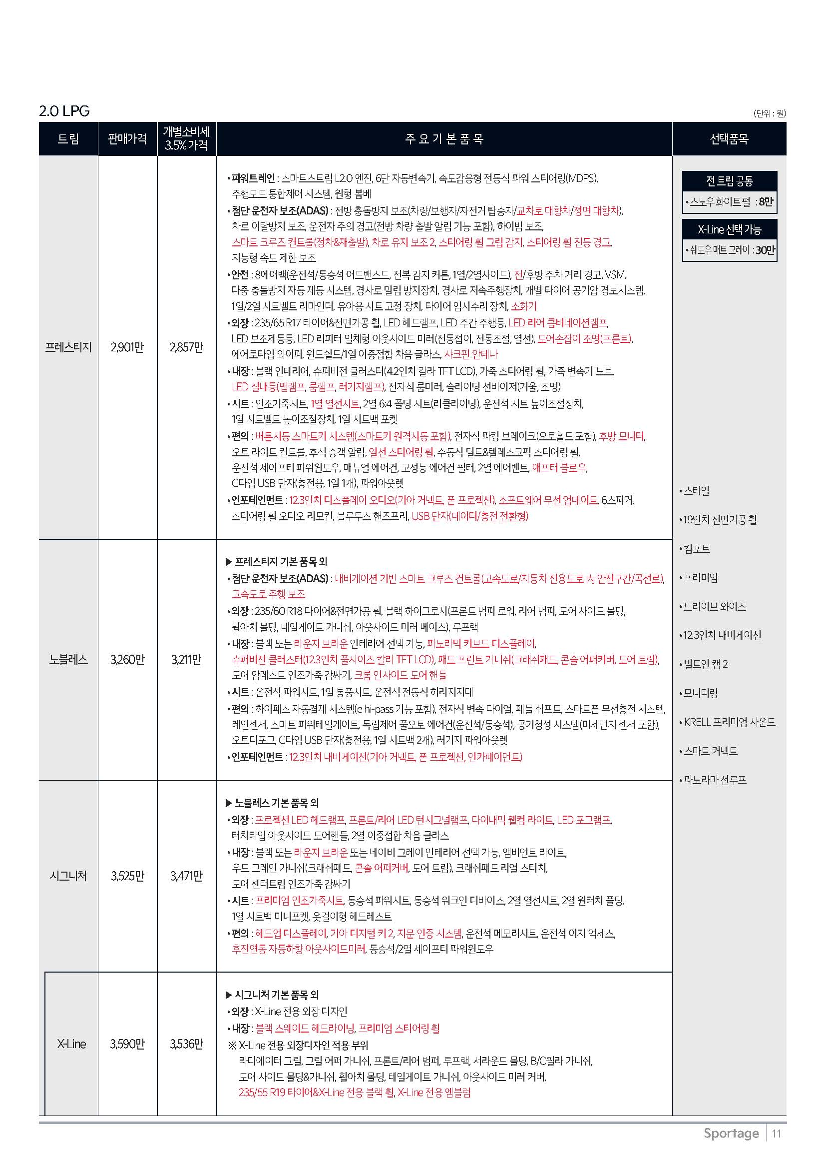 옵션사양이나 가격등 정확한 정보는 공식pdf 로 확인가능합니다.