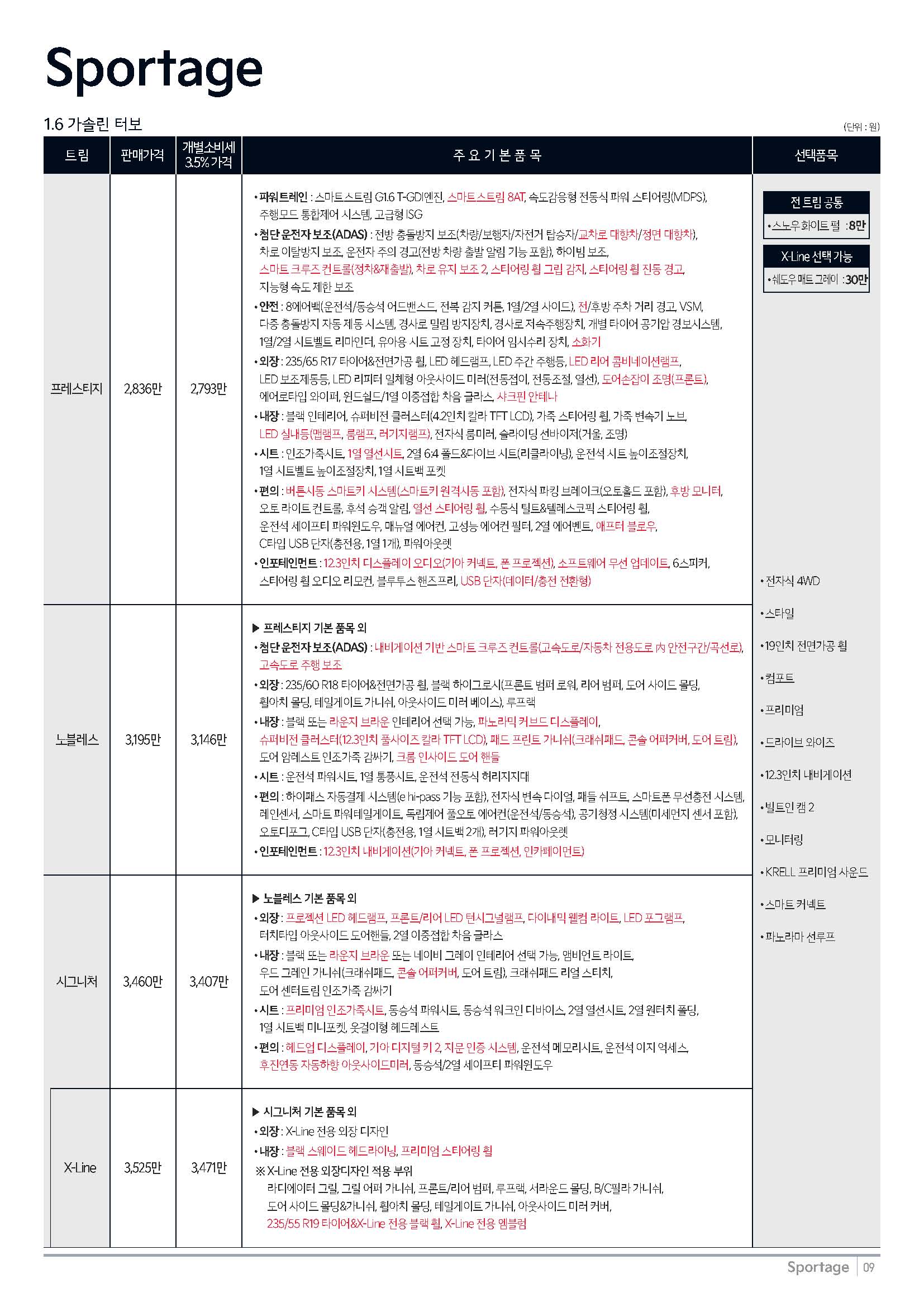 기아 더뉴스포티지 옵션