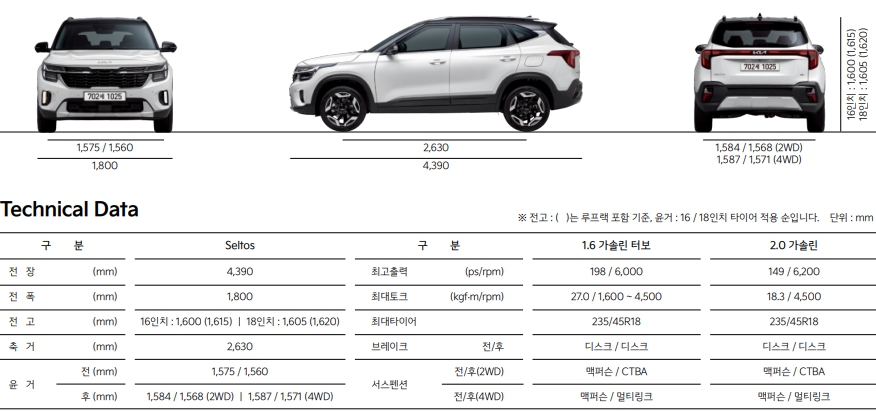 2024셀토스 가격표 제원 옵션 추천(1.6가솔린 2.0가솔린)