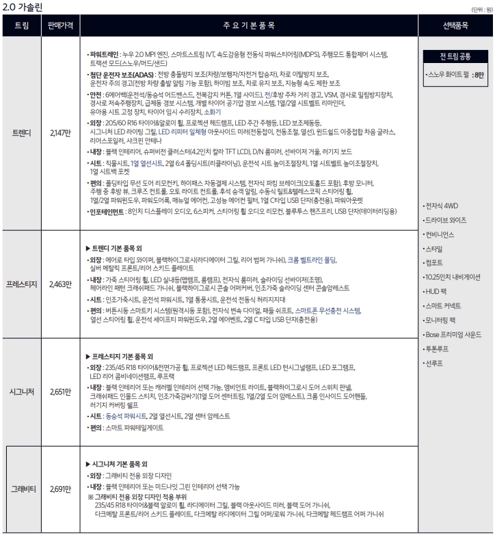 정확한 가격과 옵션사양은 공식 PDF를 확인해보세요.