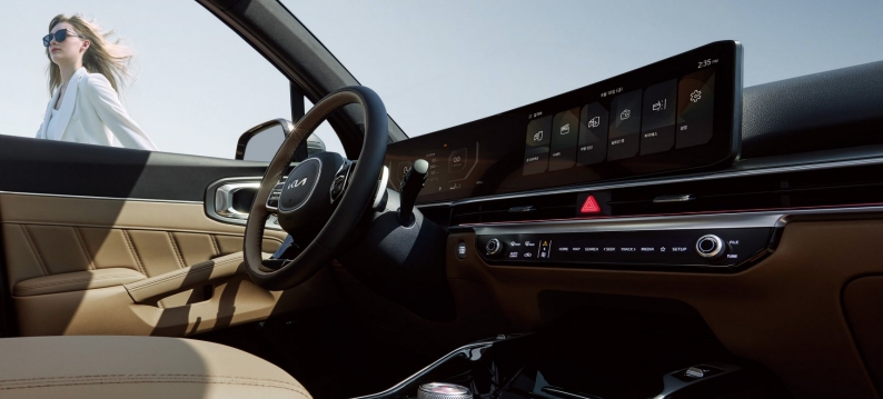 기아는 패밀리룩과 가로형 인테리어를 동일하게 적용하고 있습니다. 넓어보이는 인테리어는 공간감이 매우 좋습니다.