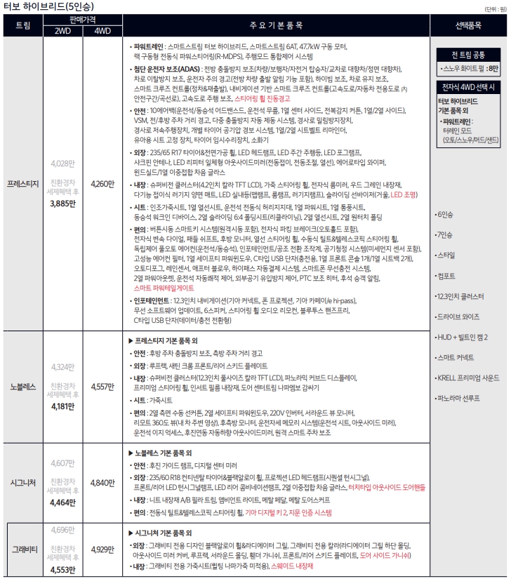 정확한 가격과 옵션사양은 공식 PDF를 통해서 확인할수 있습니다.