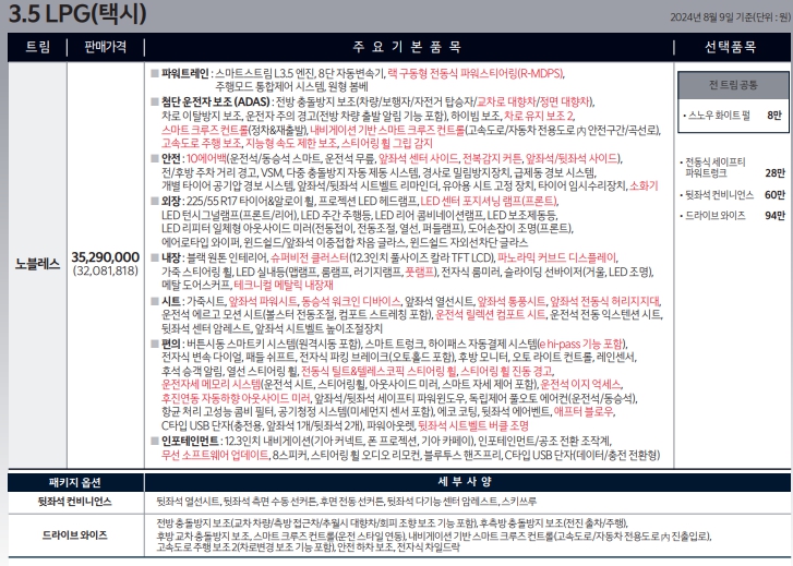 2024 현대 그랜저 택시 가격표 제원 카다로그