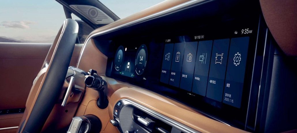 개인적으로는 맘에 드는 실내인데요. 커브드디스플레이가 이제까지는 데쉬보드 위로 올라오는 모양이었지만 펠리세이드는 데쉬보다 안쪽에 넣어서 한층 고급스러운 분위기를 보여줍니다.