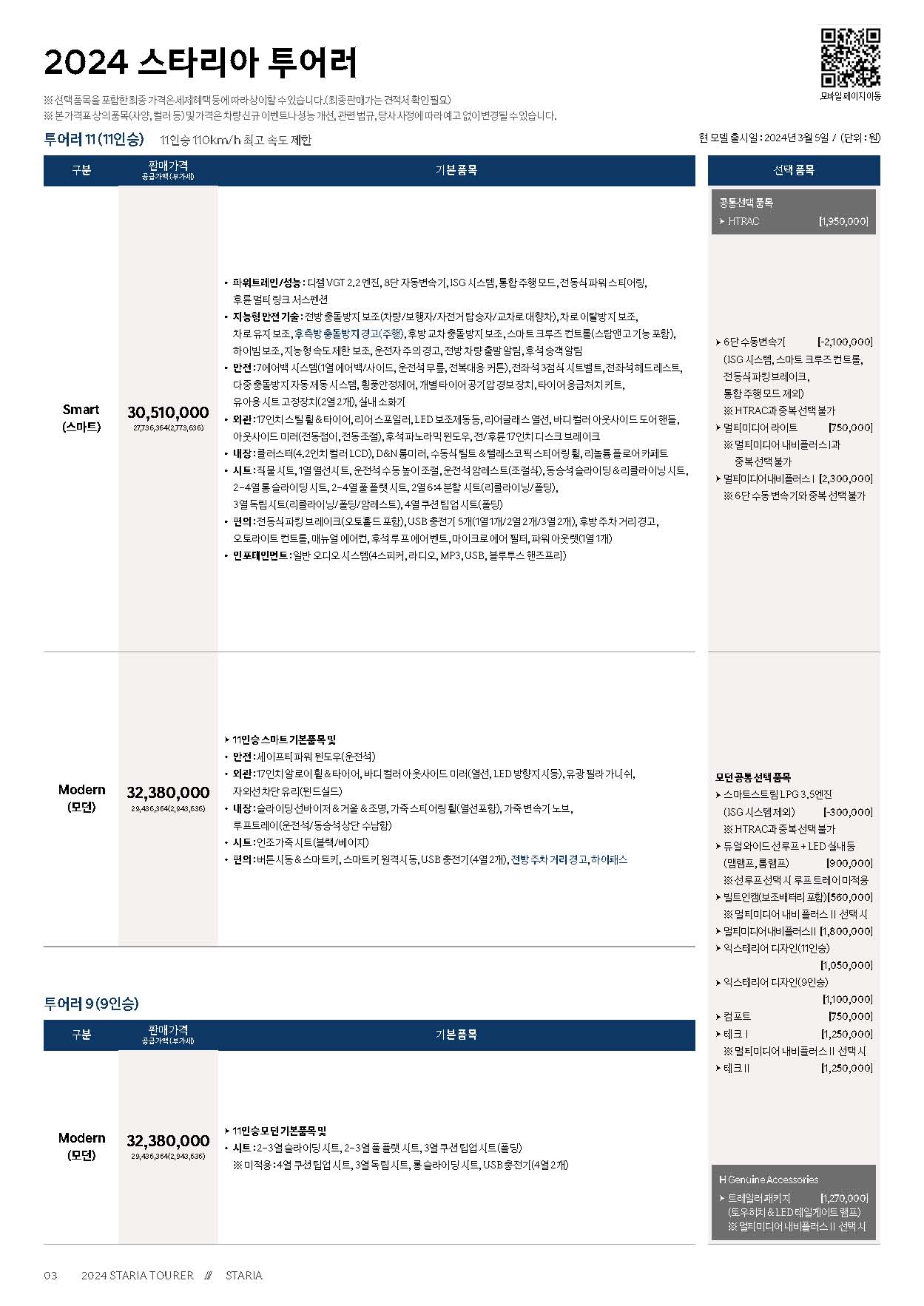 스타리아 옵션