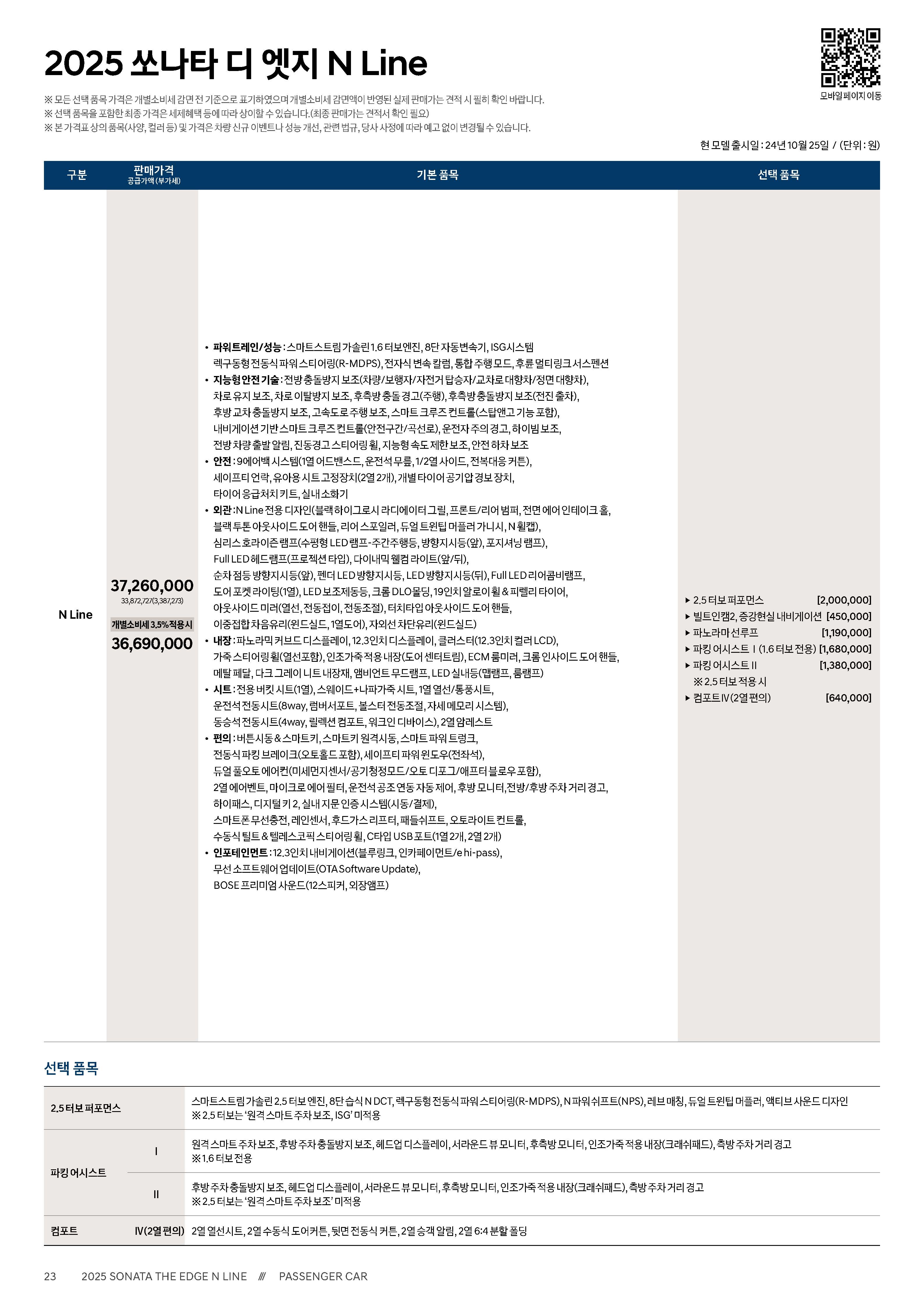n라인은 디자인에 특화된 모델입니다. 일반적인 운행이 목적이라면 굳이 엔라인까지 구입할 필요는 없습니다. 가격차이가 상당하기 때문입니다. 디자인 요소가 많이 변경이 되면서 가격도 많이 올라갑니다.