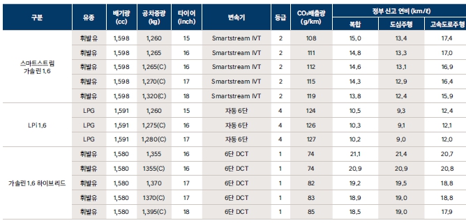 연비는 1.6 가솔린은 도심 13 고속도로 16~17 수준으로 매우 높은 모습을 보여줍니다. 도심주행 위주라고 해도 10키로는 넘을것으로 예상이 되네요. 하이브리드는 복합 19~20으로 시내주행이 연비가 더 높은 모습을 보여줍니다. 시내위주의 운행이라면 무조건 하이브리드를 추천드립니다. 아무래도 1.6 가솔린은 무단변속기라서 진동이나 변속충격은 없겠지만 발진가속측면에서는 좀 불리한 측면이 있죠.