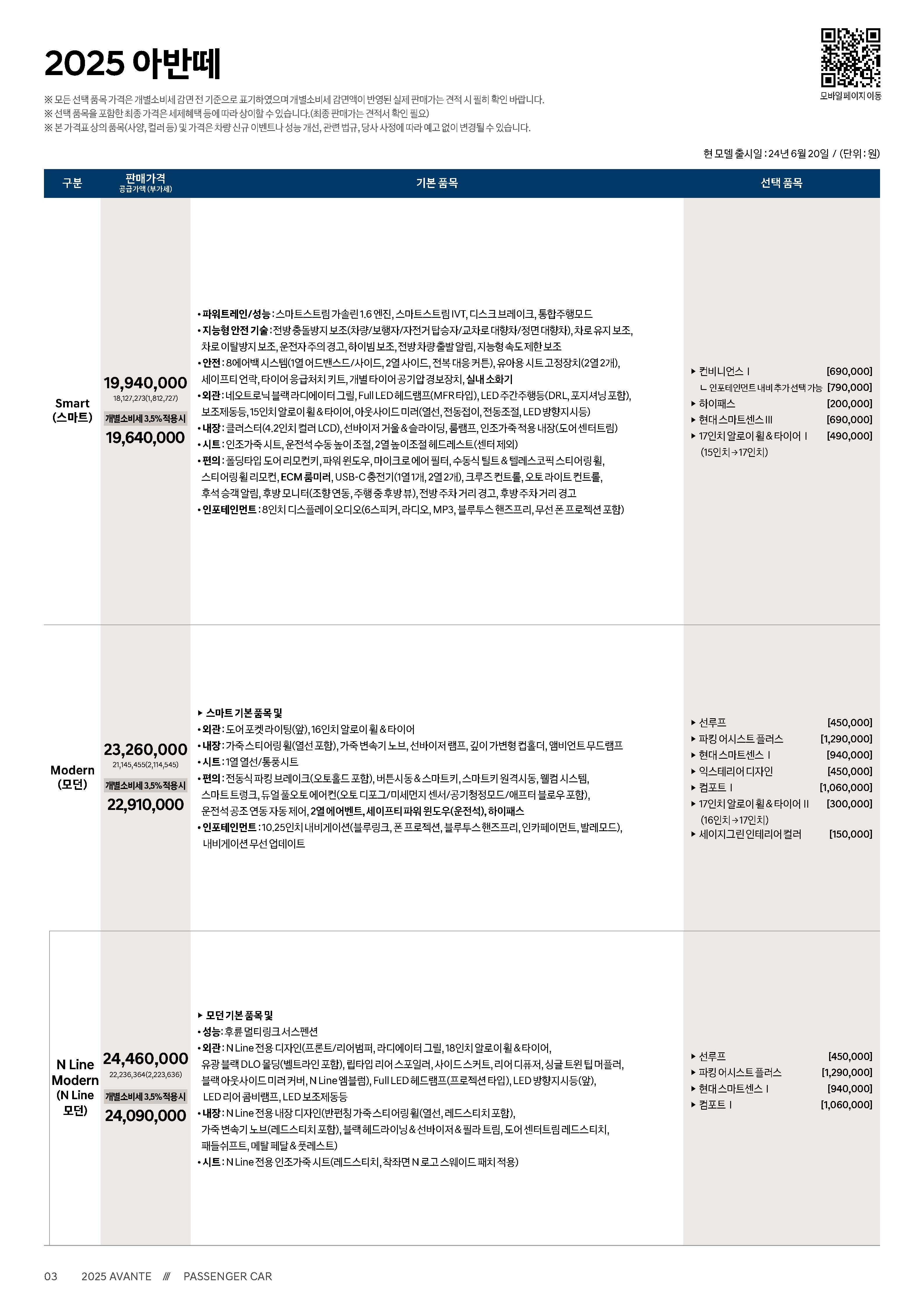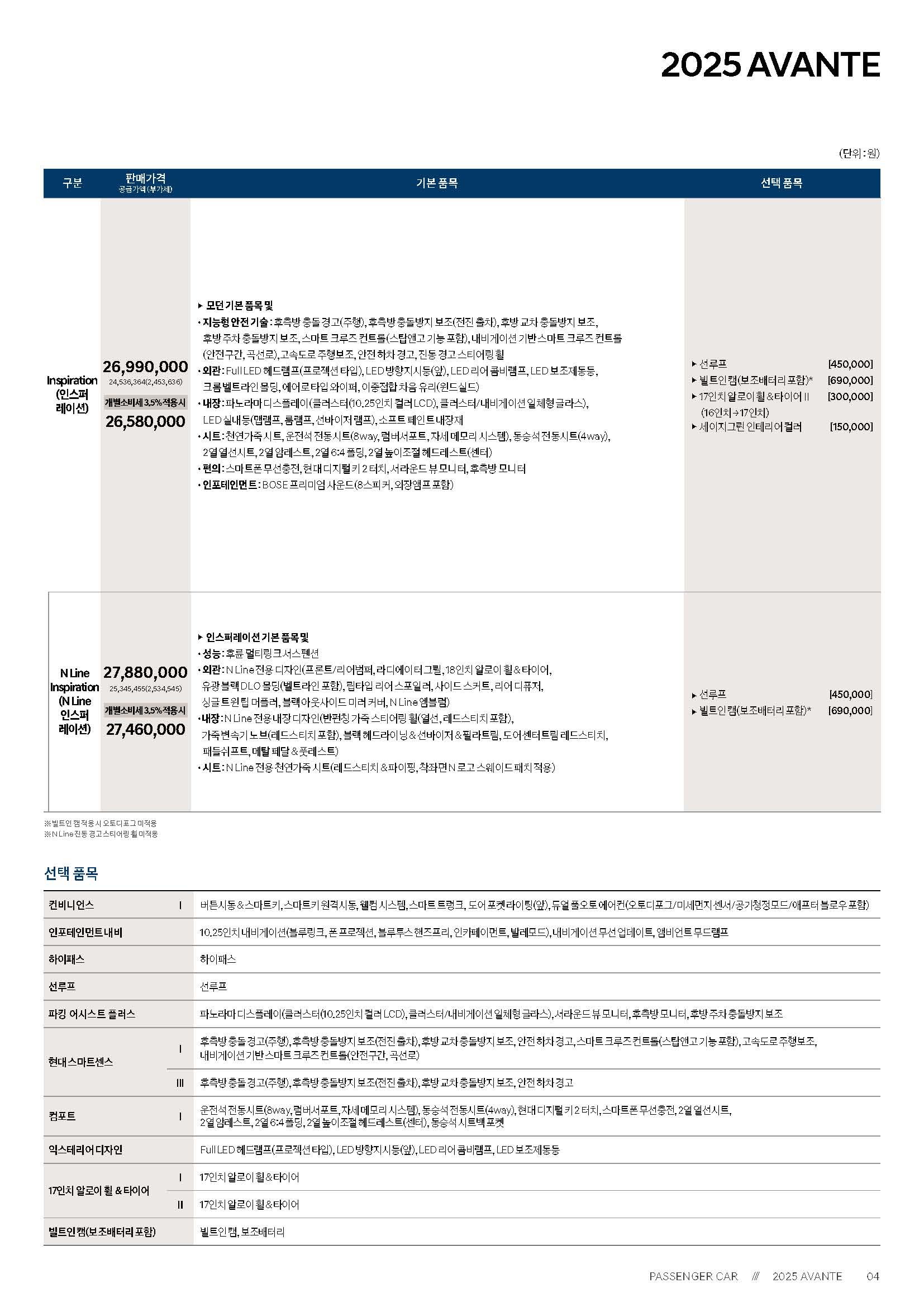 정확한 가격표와 옵션등을 보시려면 공식 pdf를 보시면 됩니다.