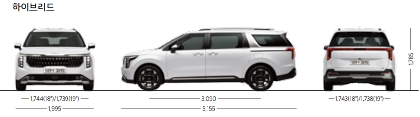 내연기관과 하이브리드의 크기차이는 거의 없습니다. 회형적으로 높이만 몇미리차이일뿐입니다.