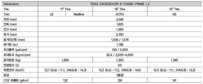 트랙스 제원