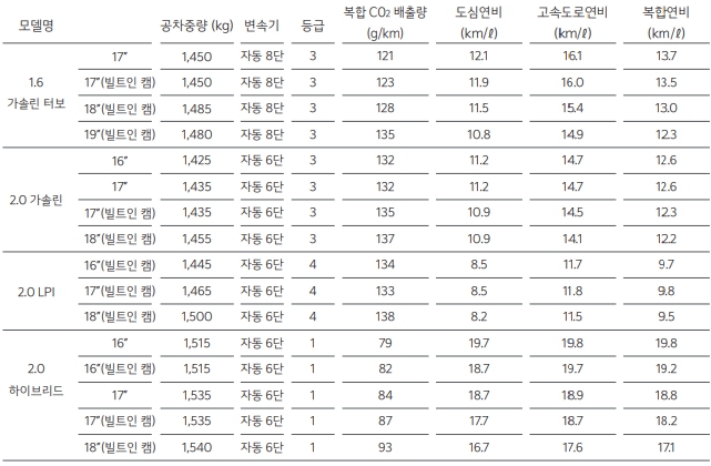 연비는 기본적으로 모든차량들이 좋은편입니다. 복합기준 가솔린은 12~13수준이고 하이브리드는 무려 17~19입니다. 하이브리드를 안살 이유가 없죠.